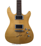The SZR520 features a flamed maple top on a mahogany body mated to a set-in mahogany neck with a 22-fret rosewood fingerboard with binding and pearloid dot position markers. Components include a pair of Ibanez NeoZ humbucking pickups and a Gibraltar III fixed bridge with through-body string routing.