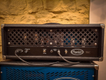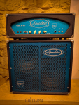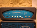 Doesn't get much cooler than this Speedster Class A 40 watt head + matching 2x12 cab w/Eminence Red Coats. Designed (and built?) by Mike Soldano, these amps are on the rare side, and it's a shame, because they are super rad. This one is Excellent condition, clean, sporting 40 watts from 4 el-84s, all handwired with big 'ol transformers, and some really cool tone shaping options. The "Humbucker" switch provides a nice mid boost for some plexi vibe, half power helps keep it manageable for lower-volume settings, OR, you can also bypass the master volume. The ported cab is sporting a pair of Eminence Red Coat 12s. Oh, and it's blue. As you can imagine, this is local pickup only.